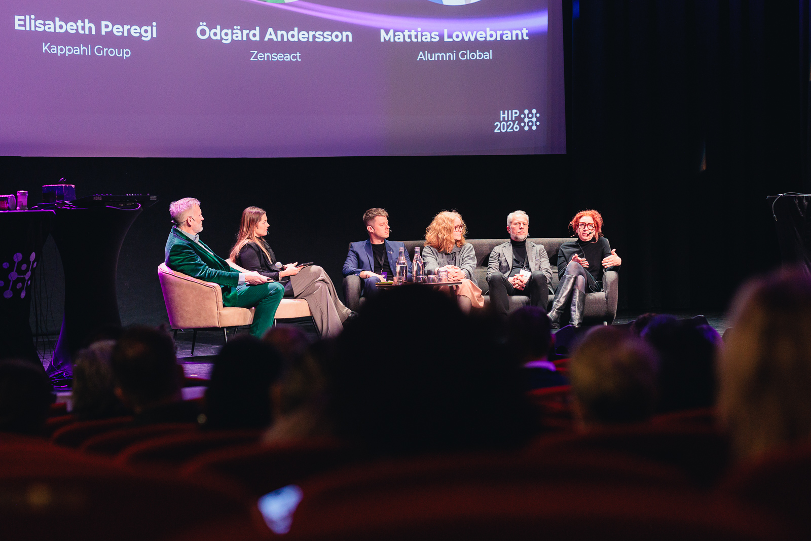 Mattias Östlund och Mattias Lowebrant från Alumni Global diskuterar vilket ledarskap som krävs i en osäker värld tillsammans med Ödgärd Andersson, CEO Zenseact AB och Elisabeth Peregi, CEO Kappahl Group